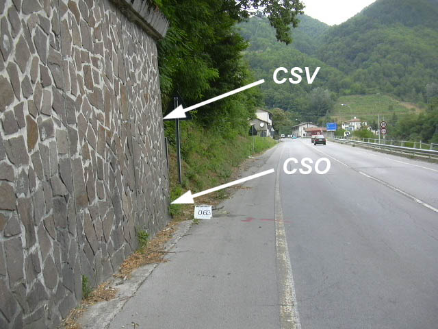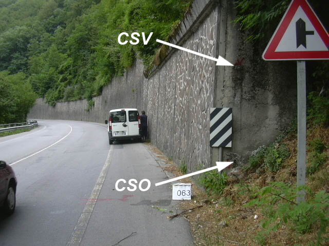 (CSO) - Bullone infisso sul muro di sostegno a monte, sul lato perpendicolare alla strada