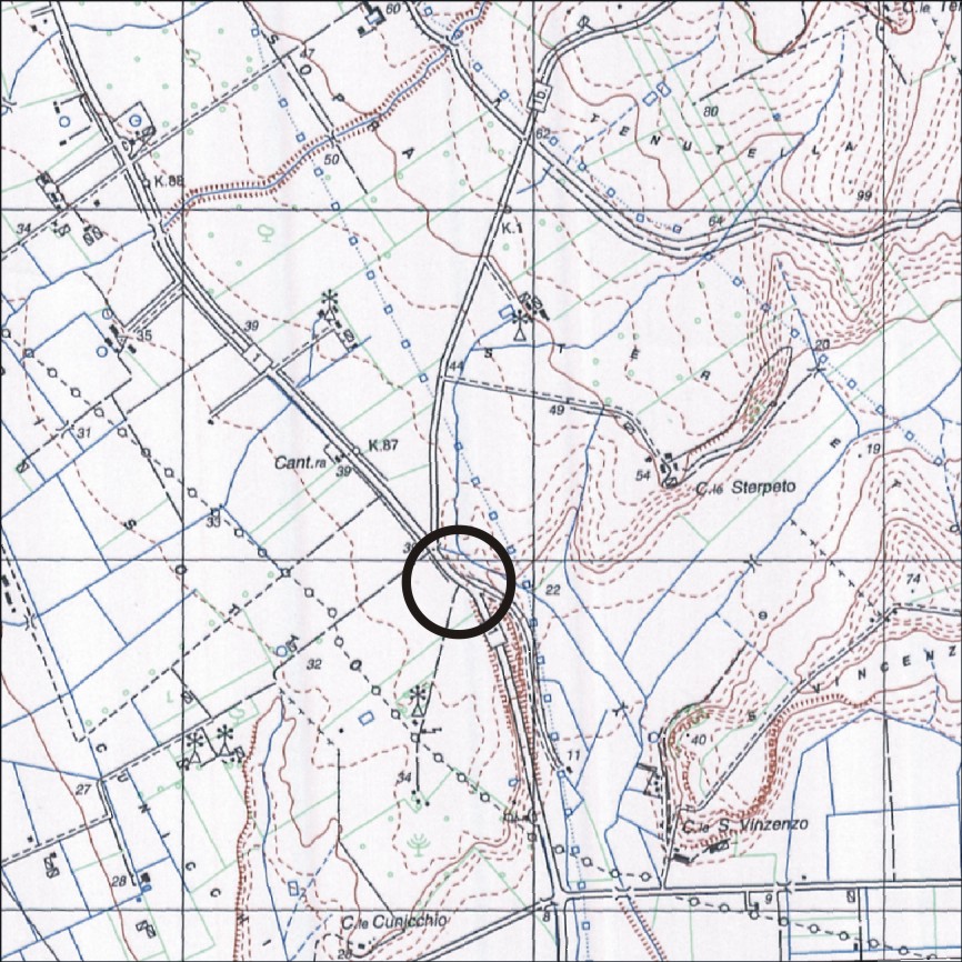 | Prima di acquistare questo punto IGM95 si consiglia di scaricare la scheda della monografia presente in questa pagina, per verificare, con un sopralluogo, il buon stato di conservazione della materializzazione (a volte danneggiata da ristrutturazioni edili, stradali, eventi naturali, vandalismi ecc) |