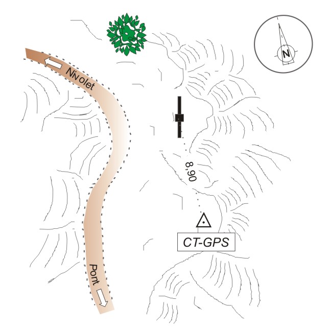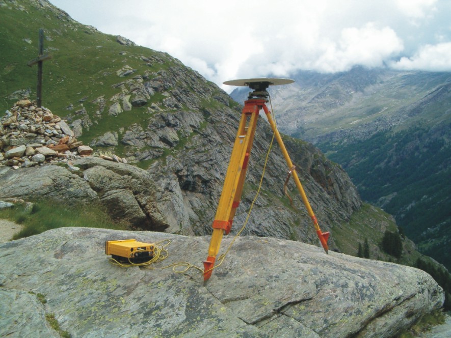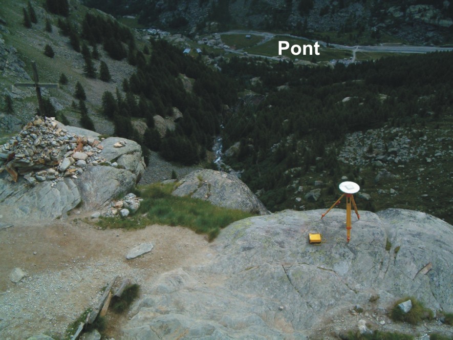 Materializzazione Centrino universale GPS in acciaio inox, infisso su roccia a metri 8,90 dalla croce, a lato del sentiero di Plan de Nivolet, presso l'inizio della ripida discesa verso Pont.