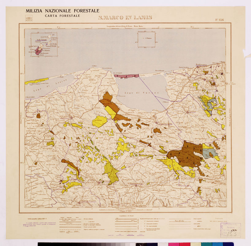 Autore Milizia forestale. Rappresentazione orografica a curve di livello. Tipologia policroma. Editore I.G.M. di Firenze.