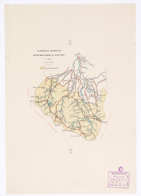 (N:14108) PLANIMETRIA SCHEMATICA DELL'ALTO BACINO IDROGRAFICO DEL TORRENTE PARMA (B0002136) Carte e stampe antiche: riproduzione digitale a 150 DPI