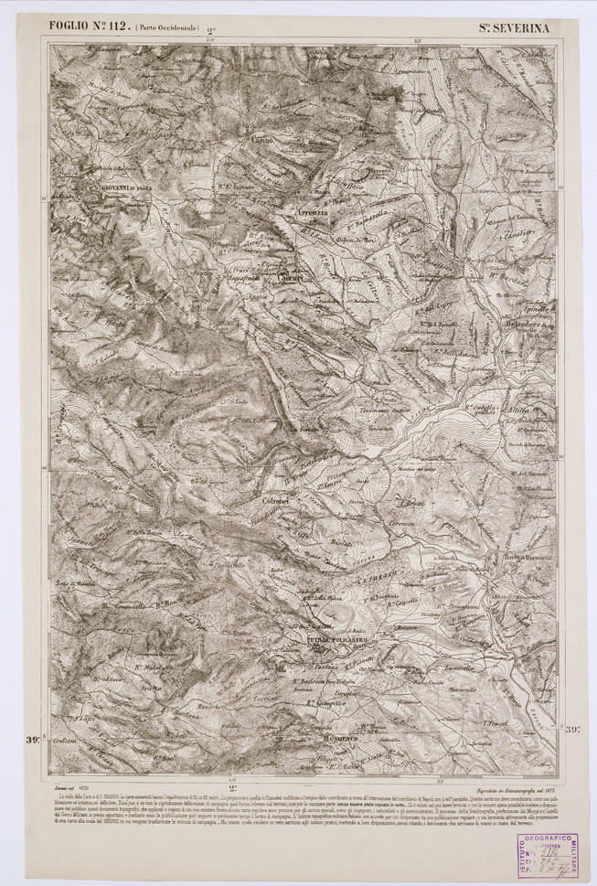 (N:2162) CARTA DELL' ITALIA MERIDIONALE EDITA DALL'ISTITUTO TOPOGRAFICO MILITARE ITALIANO - Foglio 112 parte occidentale - S.ta Severina (B0001142) Carte e stampe antiche: riproduzione digitale a 150 DPI