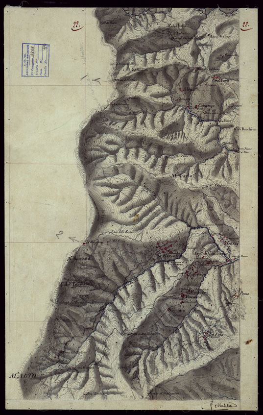 (N:15376) RICOGNIZIONI ESEGUITE ALLA SCALA DI 1/20.000 CHE COMPRENDANO LE DUE RIVIERE DEGLI EX STATI SARDI E PARTE DELLE ATTUALI PROVINCIE DI ALESSANDRIA E DI PAVIA - FOGLIO 22. (CA002653) Carte e stampe antiche: riproduzione digitale a 300 DPI