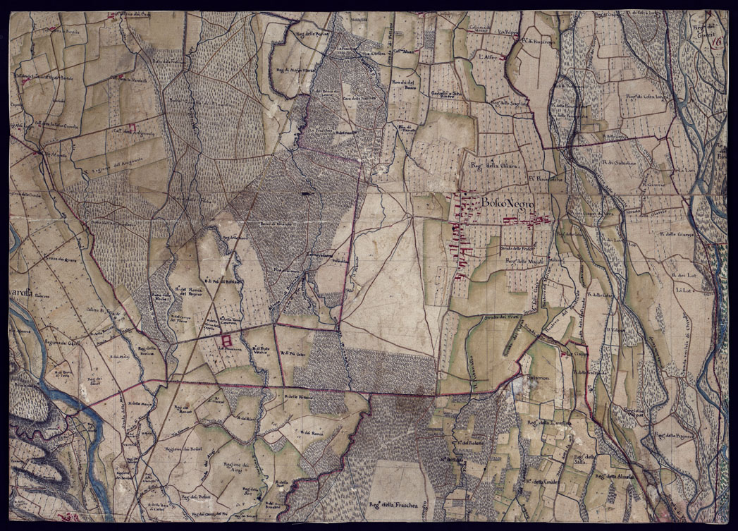 Disegno a penna, in 37 fogli, oltre un quadro d'unione, rappresentante il territorio Canavese e i Comuni limitrofi (Gassino, S. Mauro Torinese, Castiglion Torinese e Pavarolo) e cio la regione compresa tra Ciri, S. Mauro, il corso del Po e la Dora Baltea. Scala di 300 trabucchi = m.0,098, pari a 1:9.450. Secondo indicazioni di archivio risulterebbe formato dalla riduzione di mappe catastali. Non porta indicazioni di data , ma si pu ritenere del primo quarto del secolo XIX. Sopra alcuni fogli che appaiano diversamente ritagliati da come erano originariamente, si legge: " Originale dai Signor Avico, Borgiotti Cant e Marchetti". Il disegno, abbastanza accurato, riproduce con notevole precisione, come comporta la scala, tutti i particolari topografici del territorio rappresentato; cio corsi d'acqua, rete stradale, fabbricati, limiti amministrativi. Il rilievo del suolo rappresentato con ombreggiatura ad acquerello. Mediante colori a segni convenzionali sono indicate le colture e i boschi. Ricchissima anche la toponomastica. In complesso un eccellente documento topografico di grande interesse per lo studio delle variazioni fisiografiche ed antropogeografiche della regione.