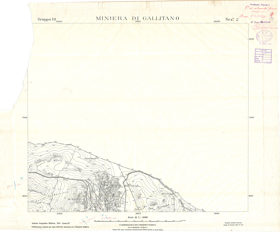 (N:32827) MINIERE SOLFIFERE DELLA SICILIA GRUPPO 10 SEZ 2 MINIERA DI GALLITANO (SE006787) Carte e stampe antiche: riproduzione digitale a 300 DPI
