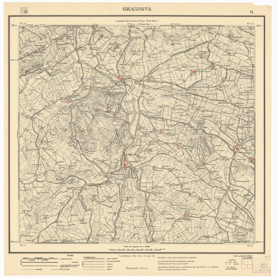 Ristampa a cura della provincia di Firenze, dai tipi dell'Istituto Geografico Militare. (autorizzazione n. 1832 in data 4/10/82)