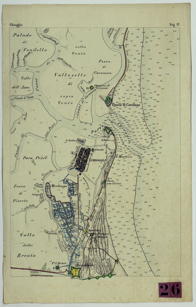 (N:11386) CARTA TOPOGRAFICA DELLA LAGUNA DI VENEZIA SCALA DI 1 A 20.000 - FOG. 17 CHIOGGIA (CA004925) Carte e stampe antiche: riproduzione digitale a 300 DPI