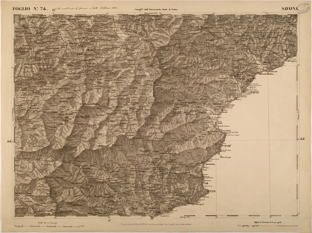 (N:27888) CARTA TOPOGRAFICA DEGLI STATI IN TERRAFERMA DI S. M. IL RE DI SARDEGNA FOGLIO 74 SAVONA (SE001445) Carte e stampe antiche: riproduzione digitale a 300 DPI