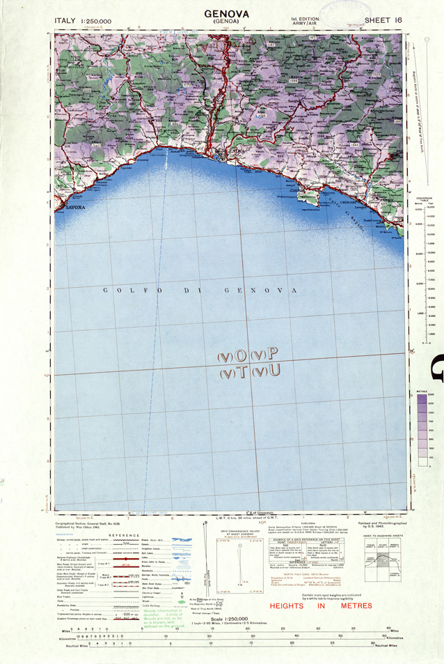 Edizione aeronautica edita dal War Office Inglese sulla base della Carta d' Italia al 250.000 del Touring Club Italiano.