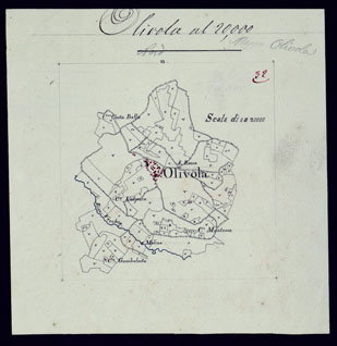 Gruppo di 51 mappe catastali di diversi comuni, impiegate con tutta probabilit per la costruzione della carta generale degli Stati Sardi al 50.00. Senza firma, eccetto due, firmate da Lagrange, una riduzione delo piano catastale del territorio d'Ivrea firmato Valsecchi 1822, e una riproduzione dei piani catastali di comuni della provincia d'Ivrea firmata Cap. Roggero.