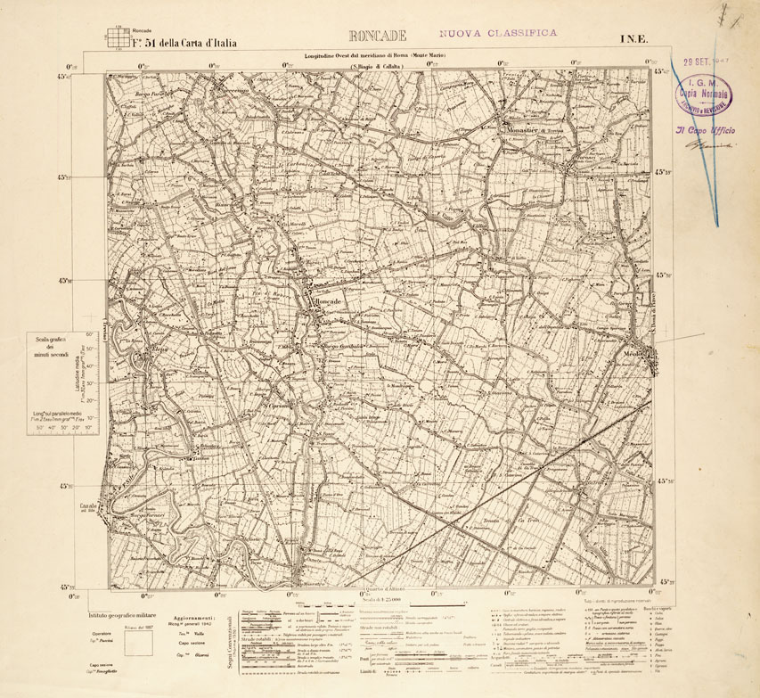 051 I-NE (RONCADE) Anno:1940 Serie 25V: Riproduzione colori edizioni precedenti