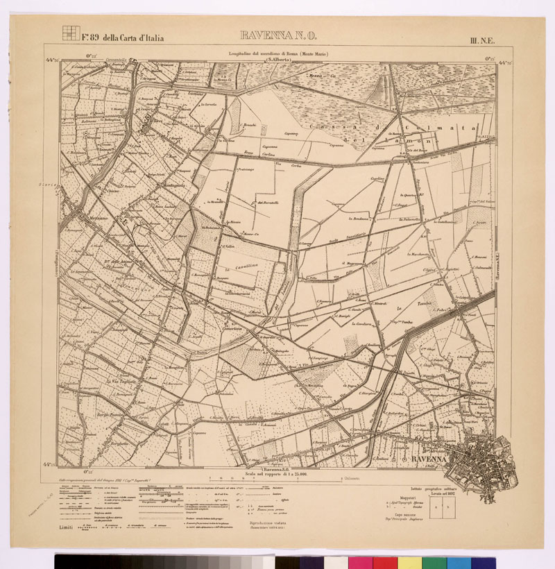 089 III-NE (RAVENNA N.O.) Anno:1911 Serie 25V: Riproduzione colori edizioni precedenti
