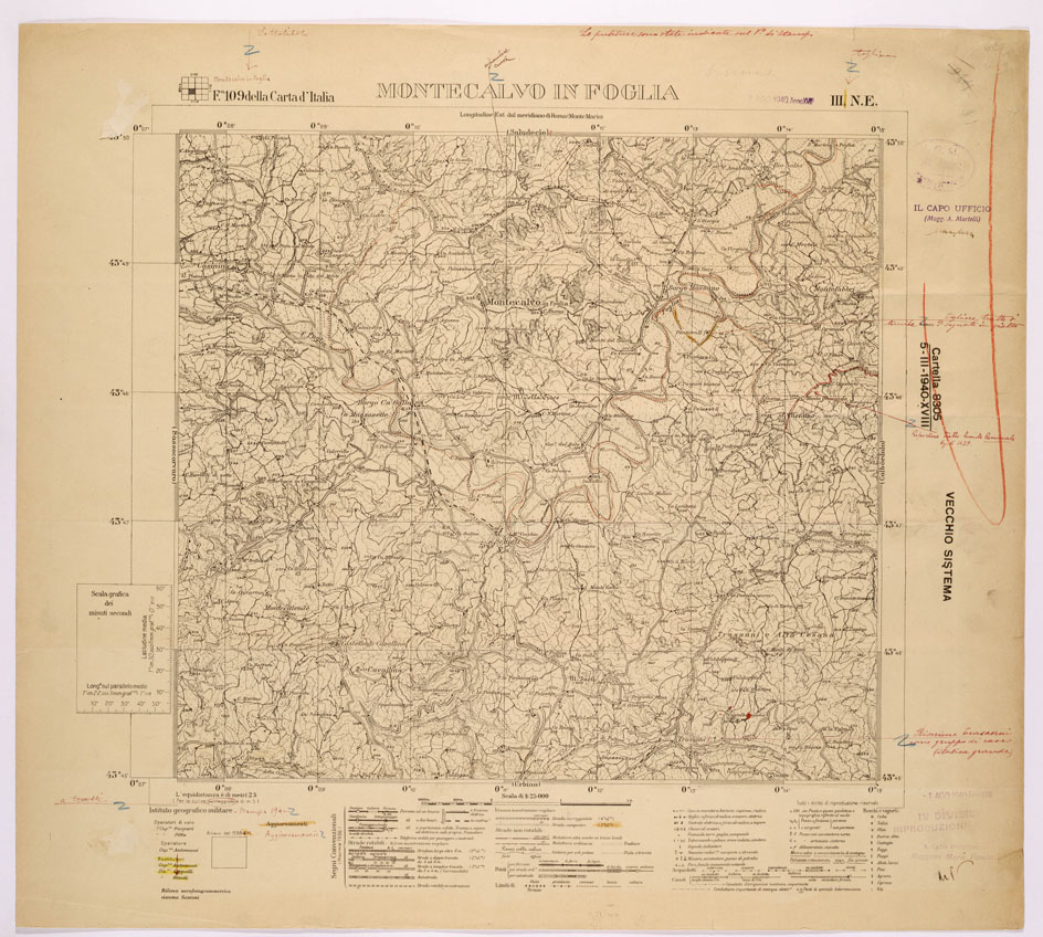 109 III-NE (MONTECALVO IN FOGLIA) Anno:1938 Serie 25V: Riproduzione colori edizioni precedenti