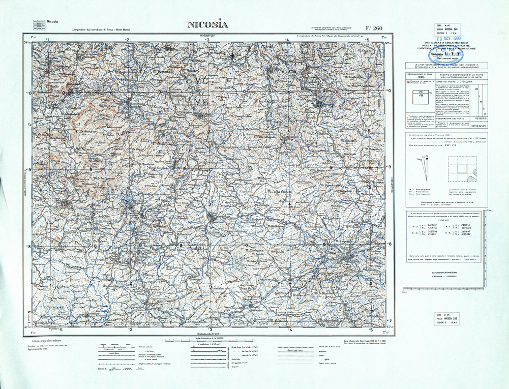 260 (NICOSIA (curve)) Anno:1968 Serie 100V: Riproduzione colori edizioni precedenti