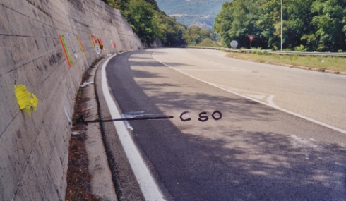 (CSO) Bullone infisso nel muro di contenimento posto di fronte allo svincolo.