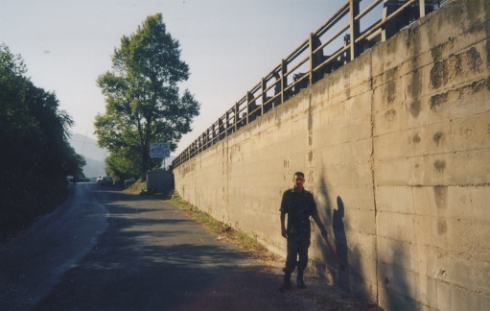 (CSO) Bullone infisso nel muro di contenimento della nuova S.S.76, al confine con la vecchia statale, sul lato sinistro di questa