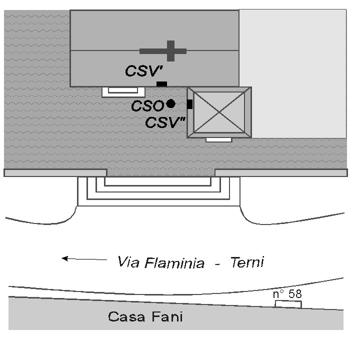 (CSV') Piastrina sul muro Nord, inclinato, alla base del campanile in corrispondenza del pozzetto