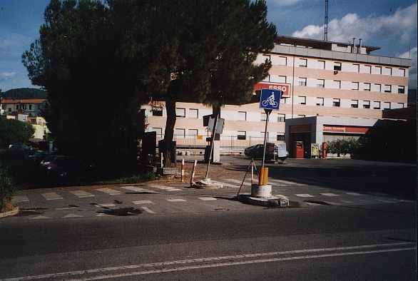 (CSO) Bullone infisso nel muretto di confine in C.A. tra il distributore "ESSO" e il parcheggio del supermercato "OVIESSE", situati in Viale Italia.