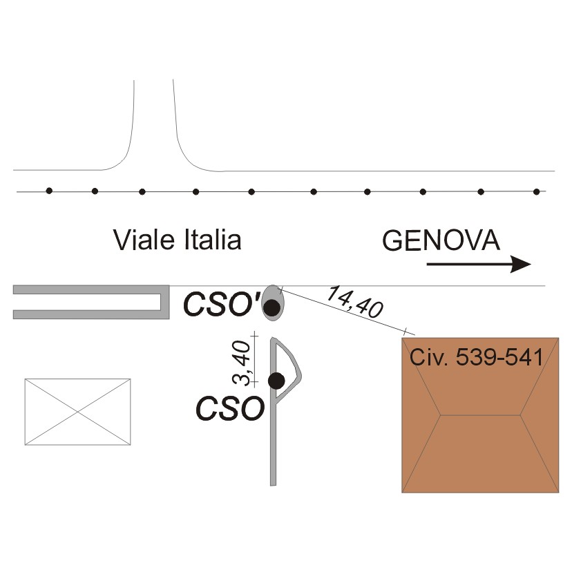 (CSO') Centrino inox tipo GPS cementato sull'isola spartitraffico posta lateralmente alla strada nei pressi del CSO.
