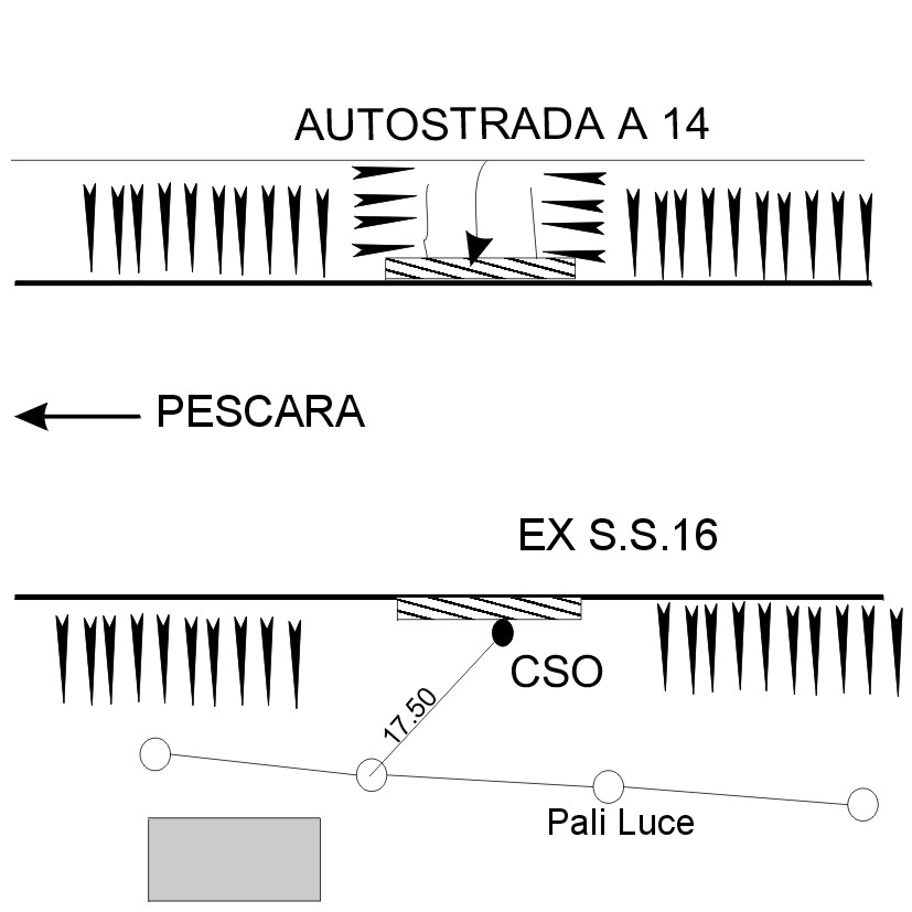 (CSO) Bullone infisso in mezzeria al bocchettone in cemento a valle del tombino stradale.
