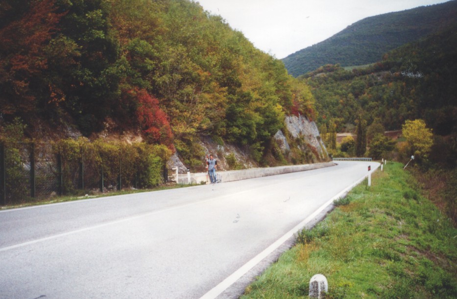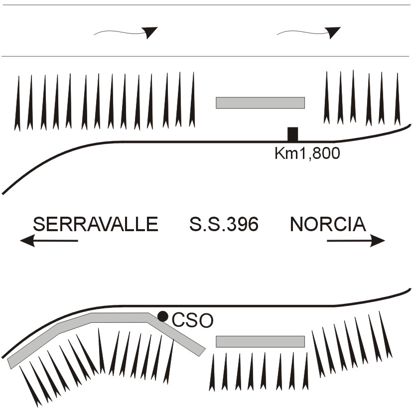 (CSO) Bullone infisso all'estremità sinistra del cordolo, posto a destra della S.S. 396 in direzione Norcia, al Km 1,800.