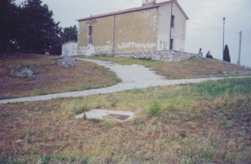 (CSO') Chiodo del Catasto infisso sul muro di contenimento parallelo al prospetto laterale destro della chiesetta.