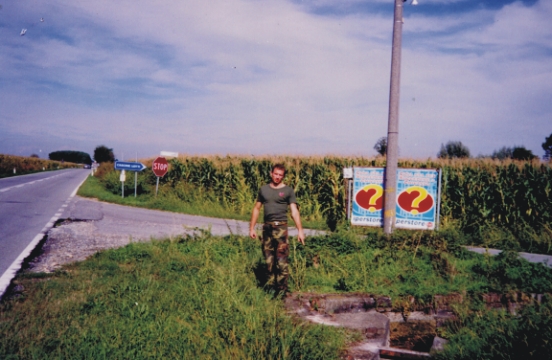 (CSO) Chiodo GPS infisso sulla sommità di una chiusa dopo il Km 39 sulla S.S. 11 direzione Torino, lato sx, in prossimità del bivio per C. Lotti.