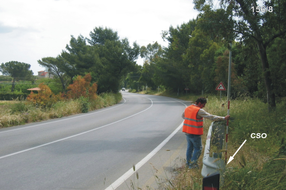 (CSO) - Chiodo universale orizzontale infisso sulla sommità anteriore sinistra della soletta del tombino, ubicato a destra della SS 561 in direzione Gela.