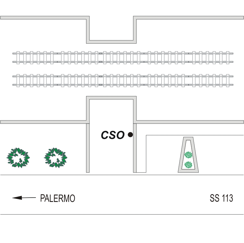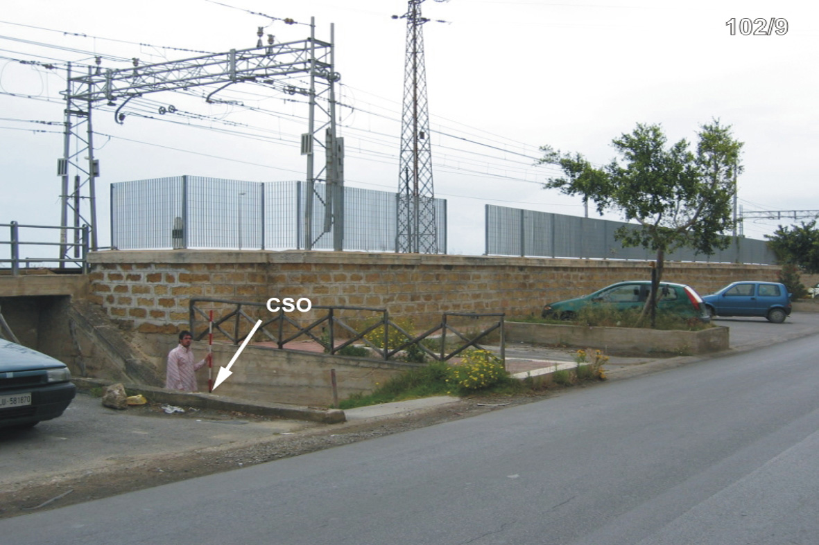 (CSO) - Bullone infisso nel muro di sostegno, lato destro dell'accesso al sottopassaggio ferroviario, posto a destra della SS 113 in direzione Palermo.