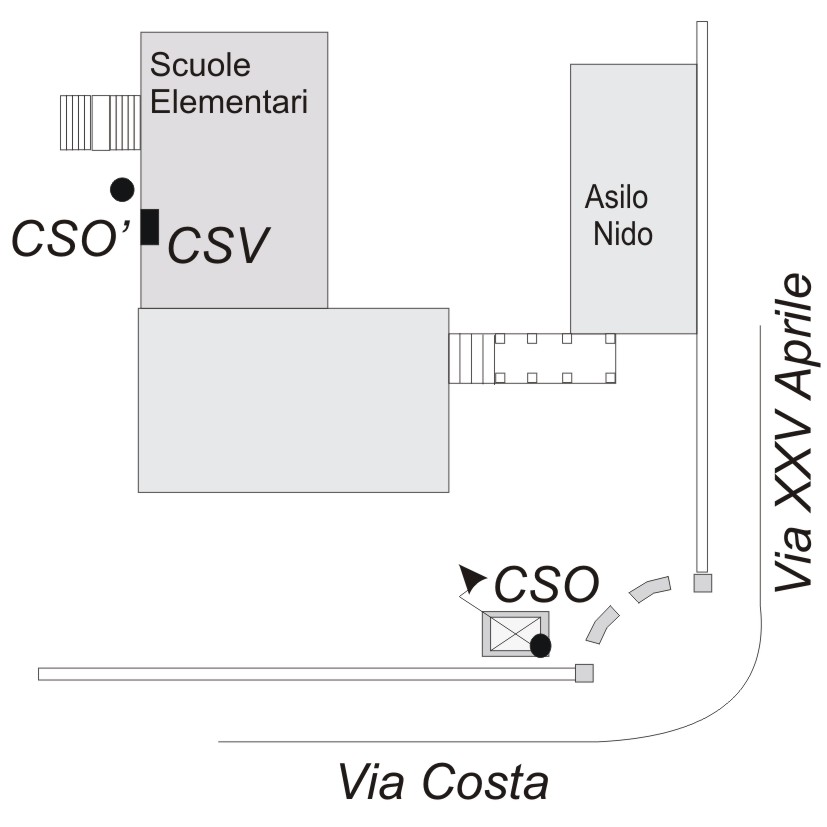 (CSO) - Centrino Universale infisso sulla sommità della piattaforma in c.a. di base alla cabinetta elettrica posta all'ingresso da Via Costa all'Asilo Nido annesso al complesso della Scuola Elemntare.