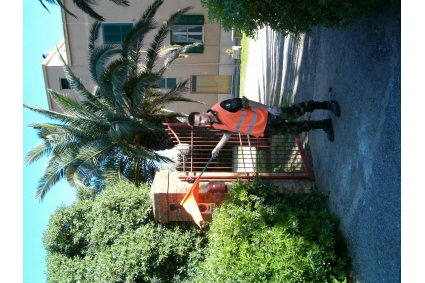 (CSO) - Pozzetto in ghisa posto alla base del pilastro sinistra del cancello di accesso, rialzato con tubo PVC e coperchio in ghisa. A non piu misurabile.