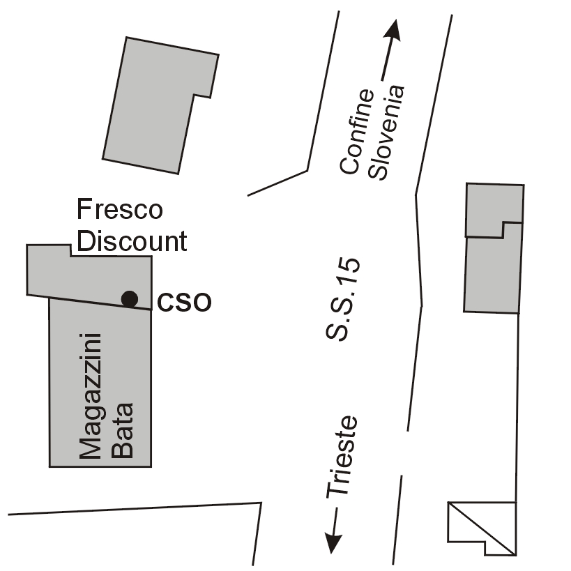 (CSO) - Bullone posto nell'interno dell'ultimo negozio a sinistra andando verso il confine, alla base della parete di sinistra entrando nel negozio "Fresco Discount" (dietro scaffalatura)