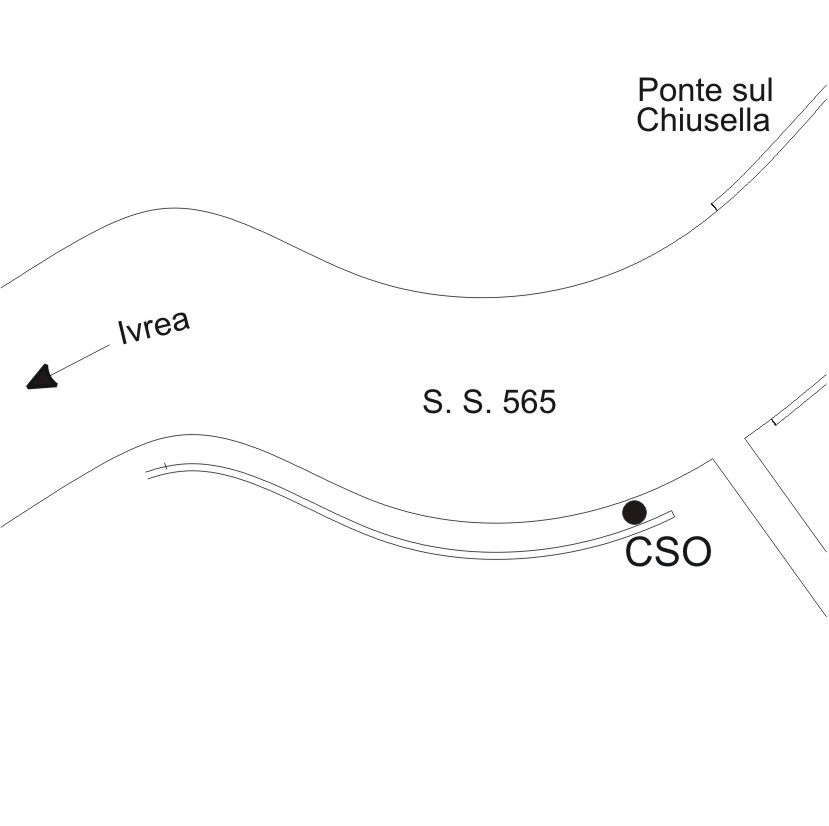 (CSO) - Bullone infisso nel muro di sostegno, a sinistra del primo contrafforte, a 15 cm dall'accesso ai n.c. 1 e 3 e presso il ponte sul Chiusella.