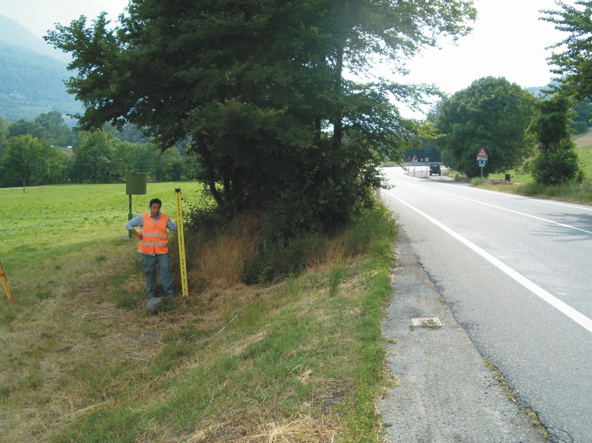 (CSO) - Pozzetto posto al piede della scarpata, a 8m dall'asse stradale e a 18,10 m dal tombino di attraversamento stradale.