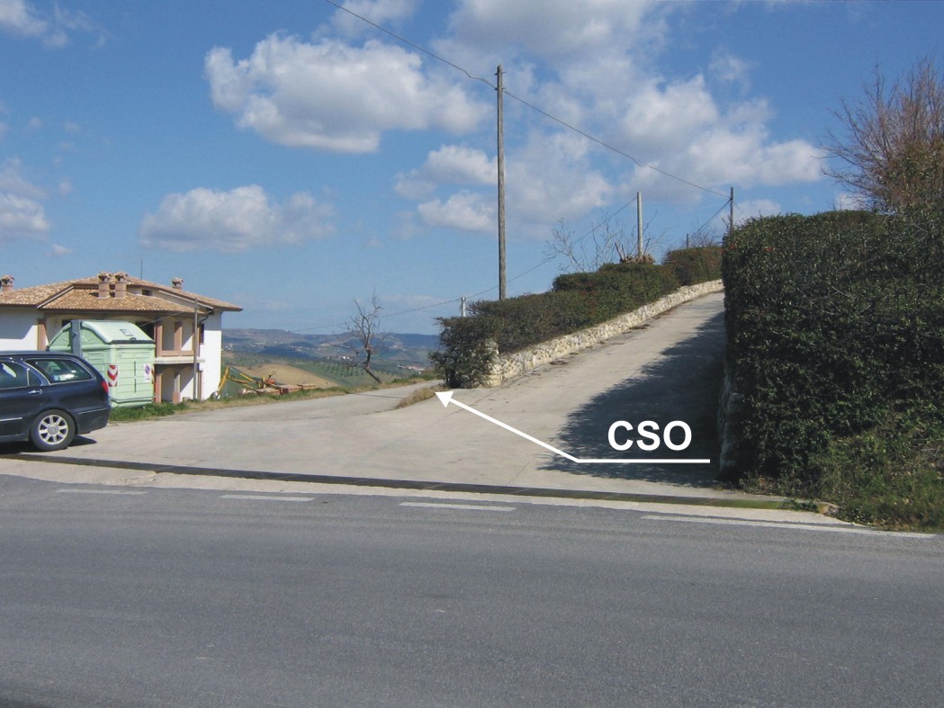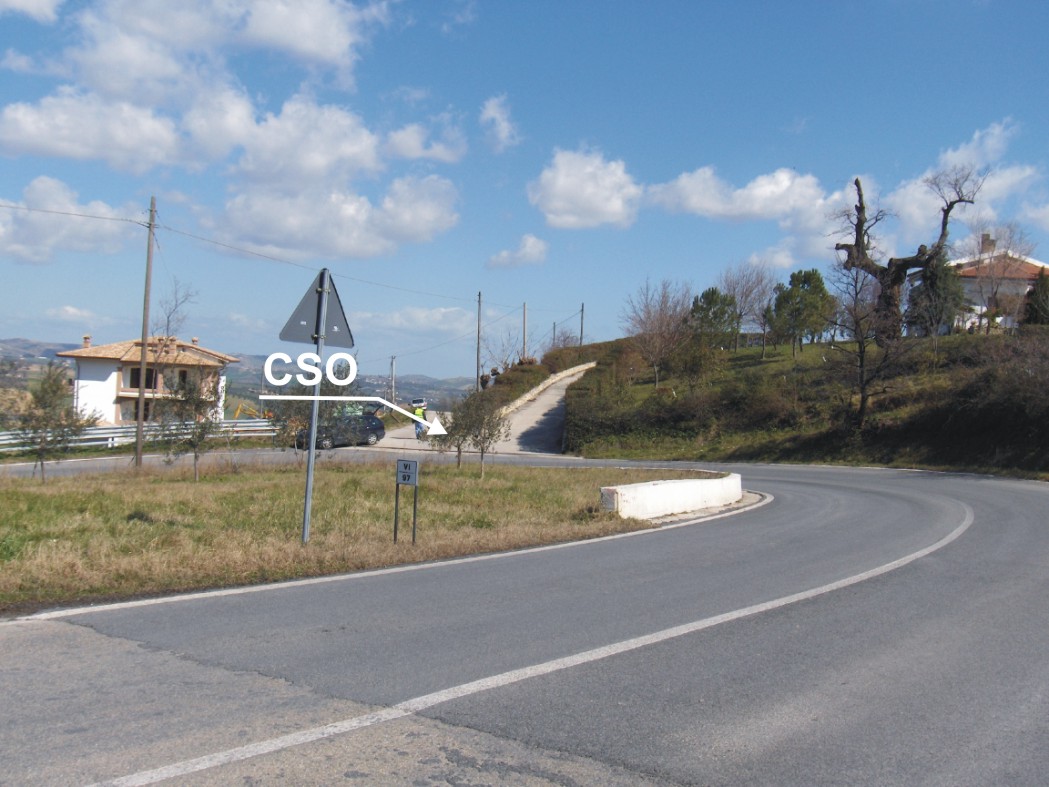 (CSO) - Bullone infisso sulla testa del muretto in c.a, in corrispondenza del bivio sulla curva,a destra in direzione Teramo.