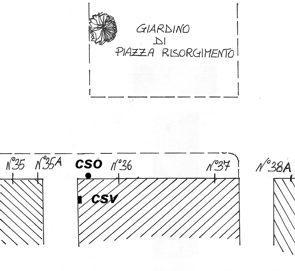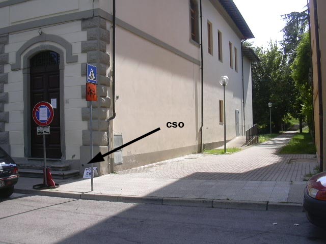 (CSO) - Bullone infisso sulla facciata, presso lo spigolo destro delle scuole al n° civico 36.