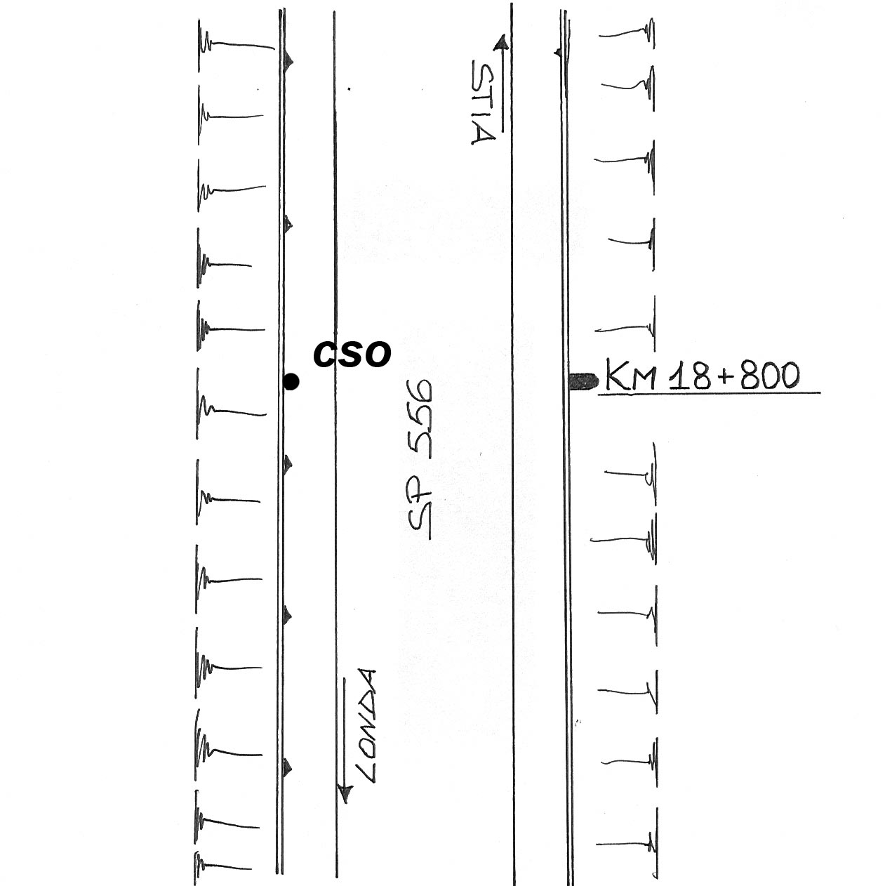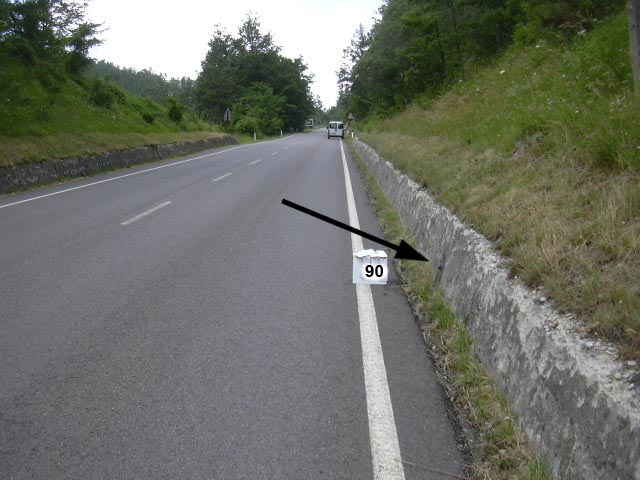 (CSO) - Bullone infisso sul muro di sostegno in c.a. davanti al cippo km 18,800.
