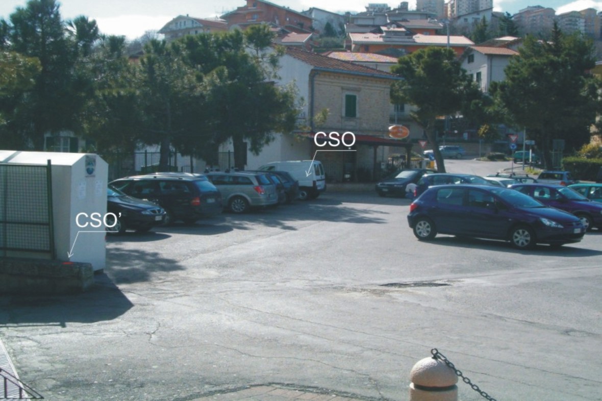 (CSO') - Centrino GPS della Regione Abruzzo n° P565 infisso sul cordolo in cemento del sottopasso autostradale,lato chiesa