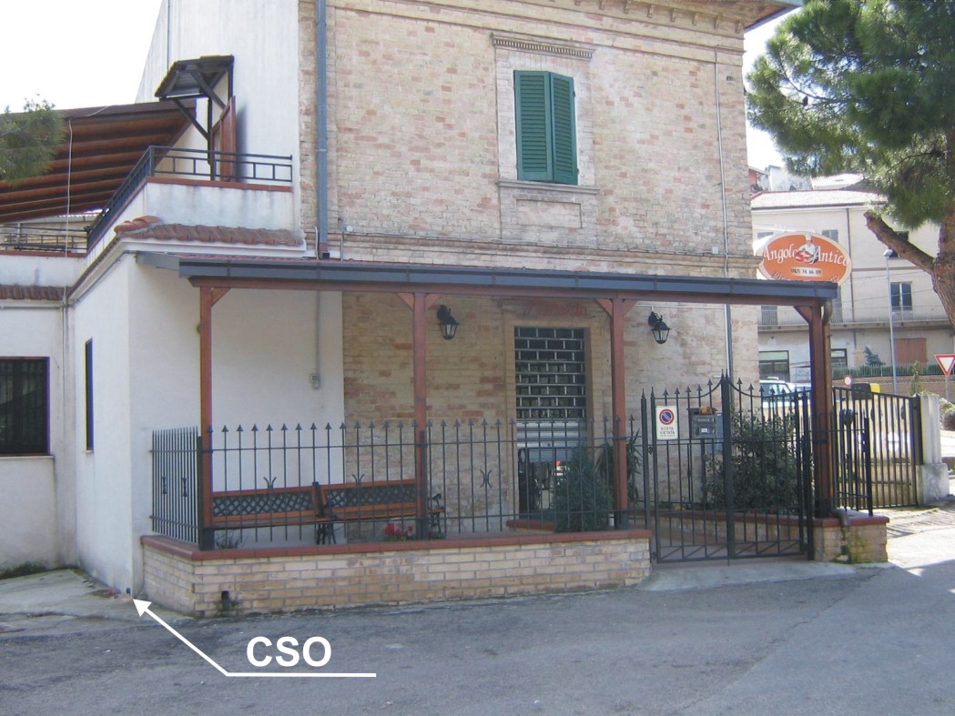 (CSO) - Bullone infisso nello spigolo di sinistra, lato raccordo autostradale, della pizzeria posta in Via dei Frentani.