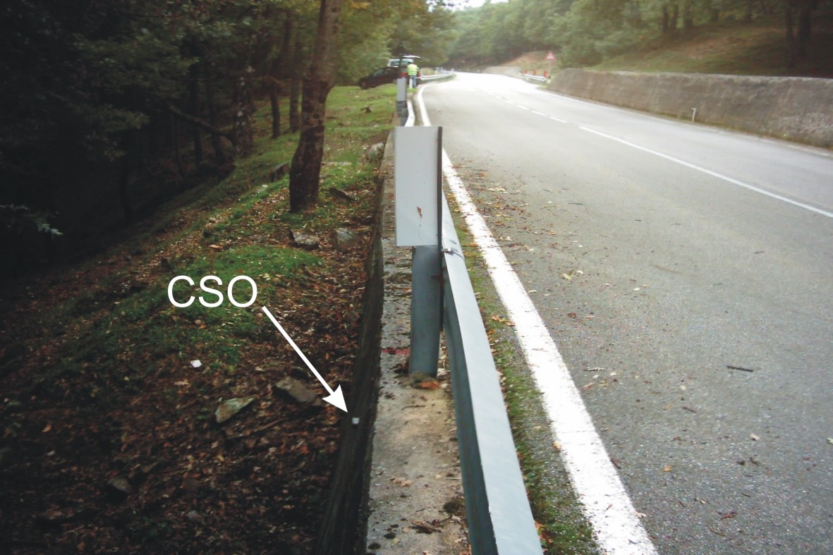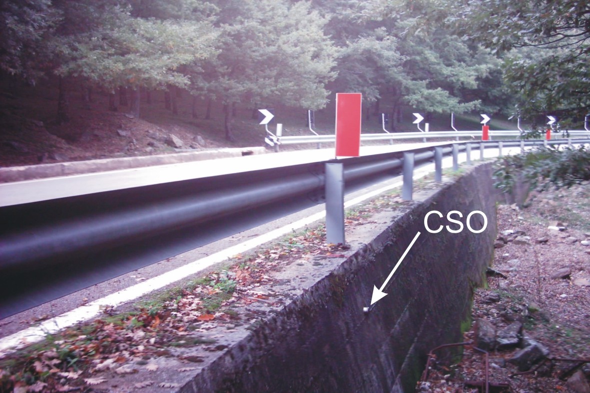 (CSO) - Bullone posto su muro di contenimento stradale, lato sinistro direzione Catenanuova, verso valle