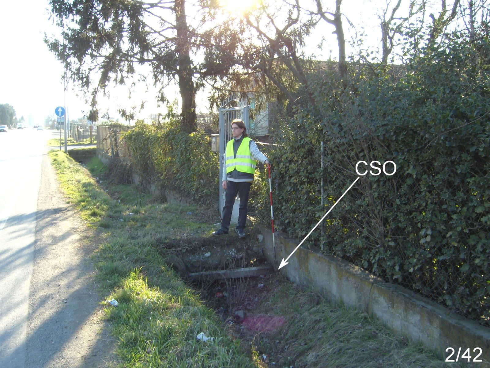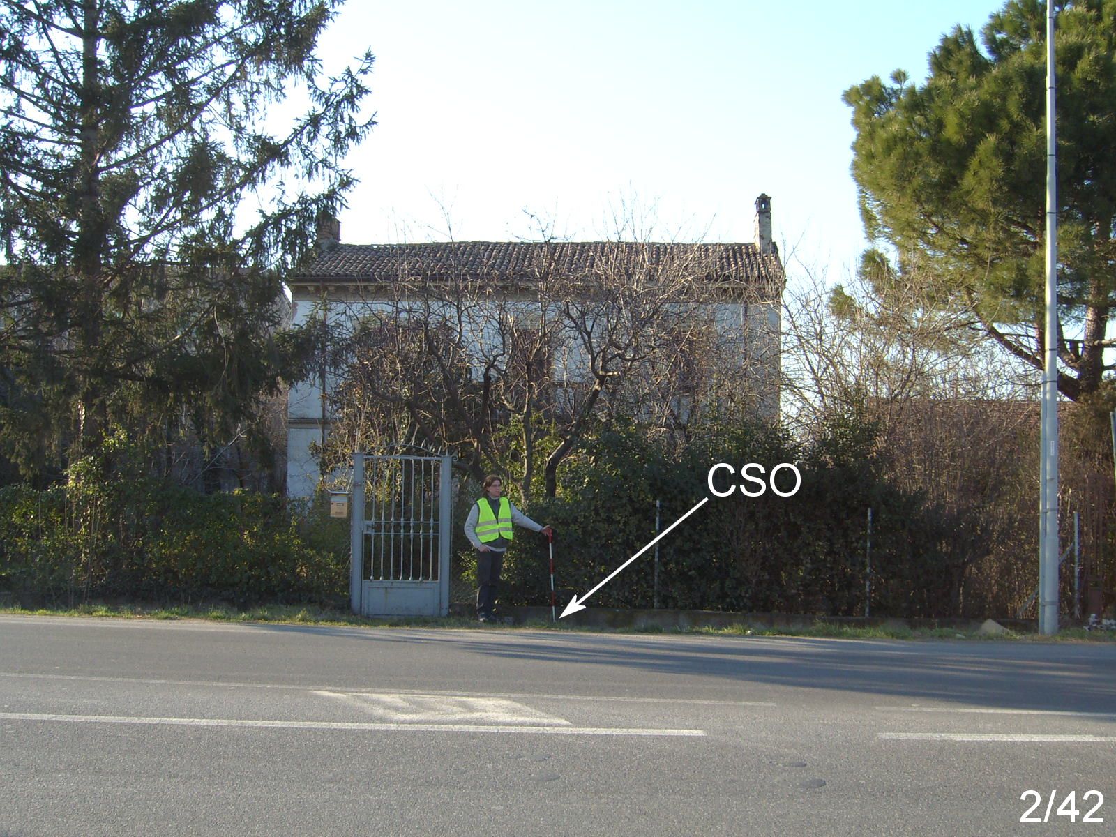 (CSO) - Bullone infisso sul muretto di sostegno della recinzione, alla residenza di Via Emilia 36, nel fosso a destra del cancelletto di ingresso.