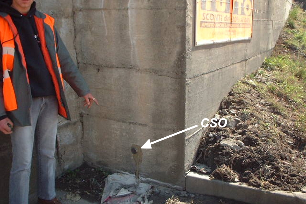 (CSO) - Bullone infisso alla base della parete del muro del cavalcavia, nella risega formata dalla scala che scende sulla via provinciale, di fronte al distributore IP al n. civico 29/33, sulla sx direzione Como.