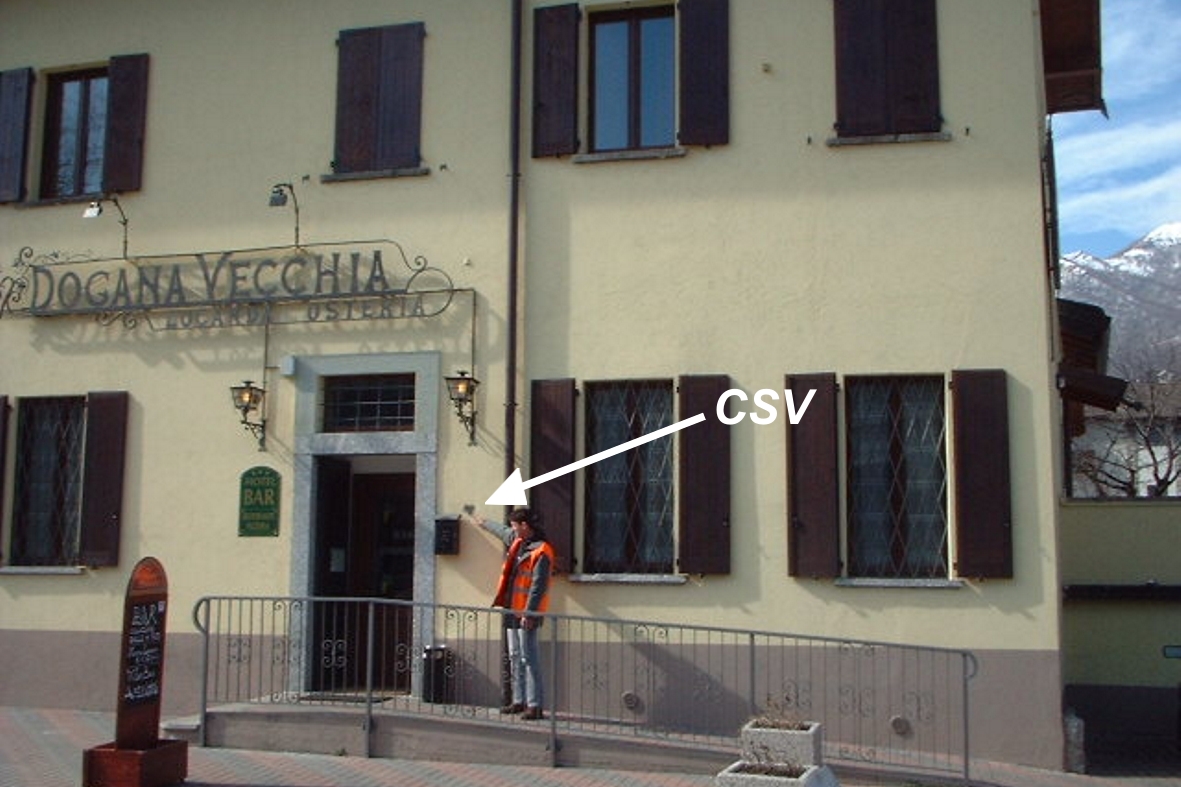 (CSV) - Mensola infissa sulla facciata a dx della porta centrale della vecchia Osteria del Ponte ora Hotel "Dogana Vecchia" al civico 25 via di Vecchia Provinciale, lato dx direzione Como.