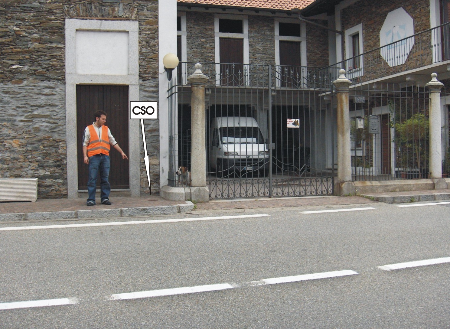 (CSO) - Pozzetto sito alla base sinistra del muro faccia alla strada, spigolo di destra, al civico n°108.
