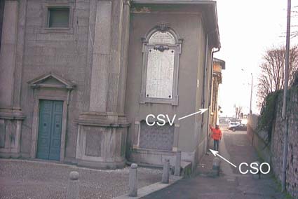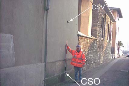 (CSV) - Mensola infissa sulla parete del campanile in corrispondenza del caposaldo orizzontale.