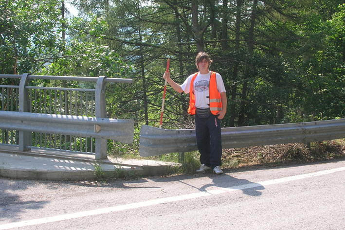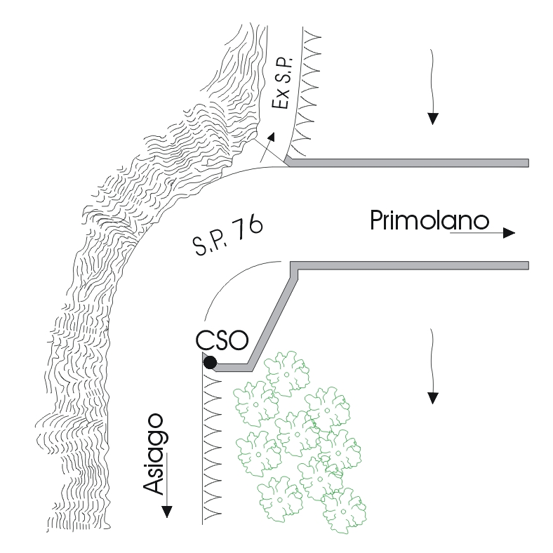 (CSO) - Centrino universale infisso alla sommità della spalla in cemento armato del viadotto, lato Asiago, in prossimità dell'inizio del guard-rail stradale, all'altezza del km 16,850.