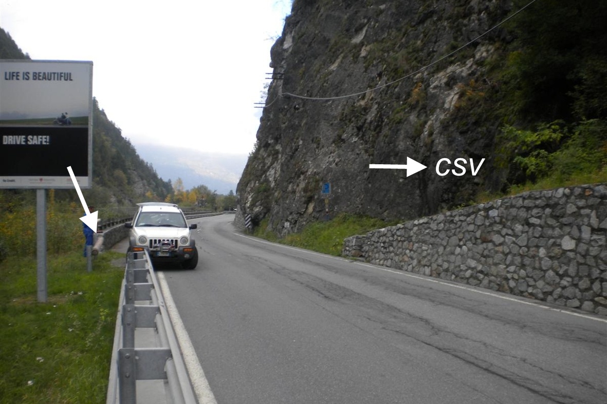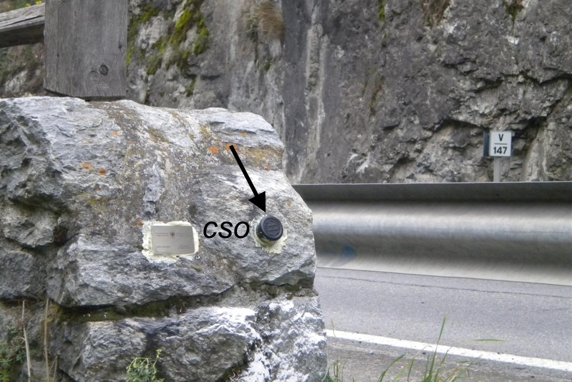 (CSV) - Mensola IGM infissa sulla parete rocciosa a monte della strada, in allineamento con il CSO.