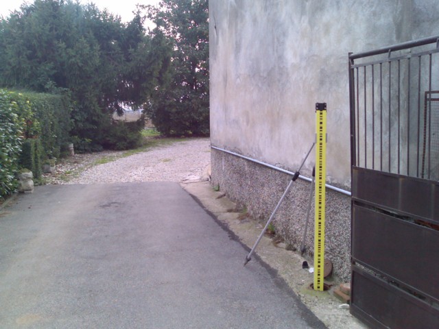 (CSO) - Chiusino in ghisa interrato alla base del fianco volto alla strada, spigolo di sinistra, protetto da tubo in PVC e coperchio in ghisa.