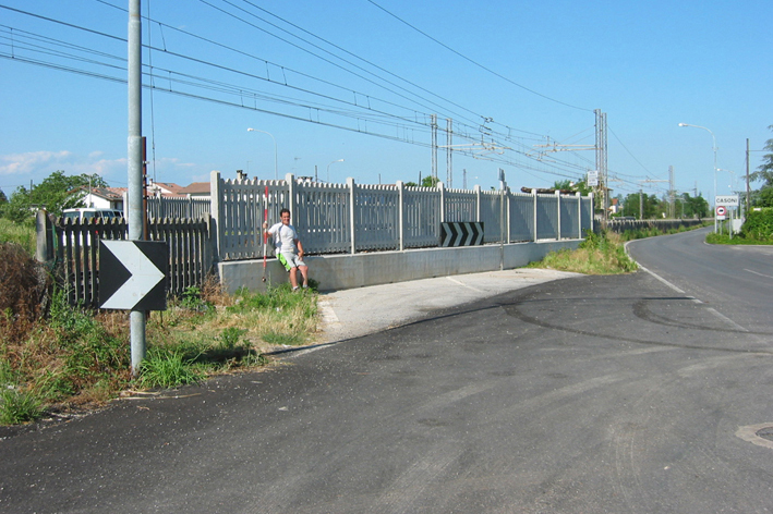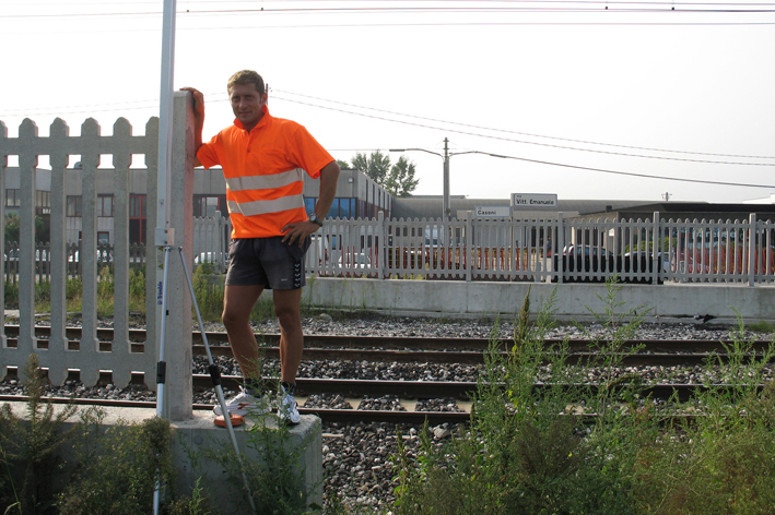 (CSO) - Bullone IGM infisso sulla faccia del muro di recinzione e separazione della zona binari, lato strada su Via Soranza.