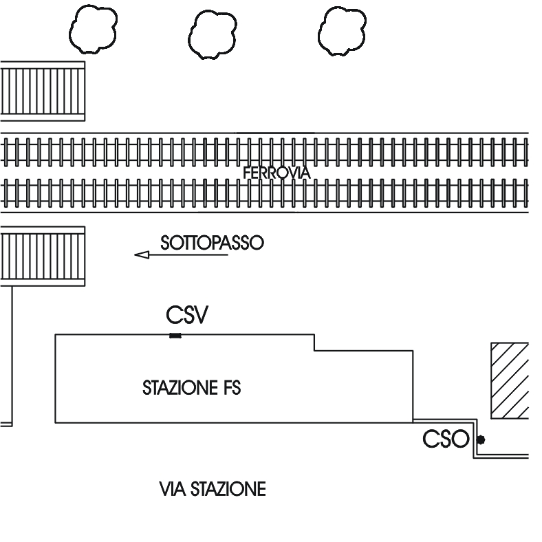 (CSV) - Piastrina antica IGM infisso sulla facciata lato binari, a destra della porta centrale.